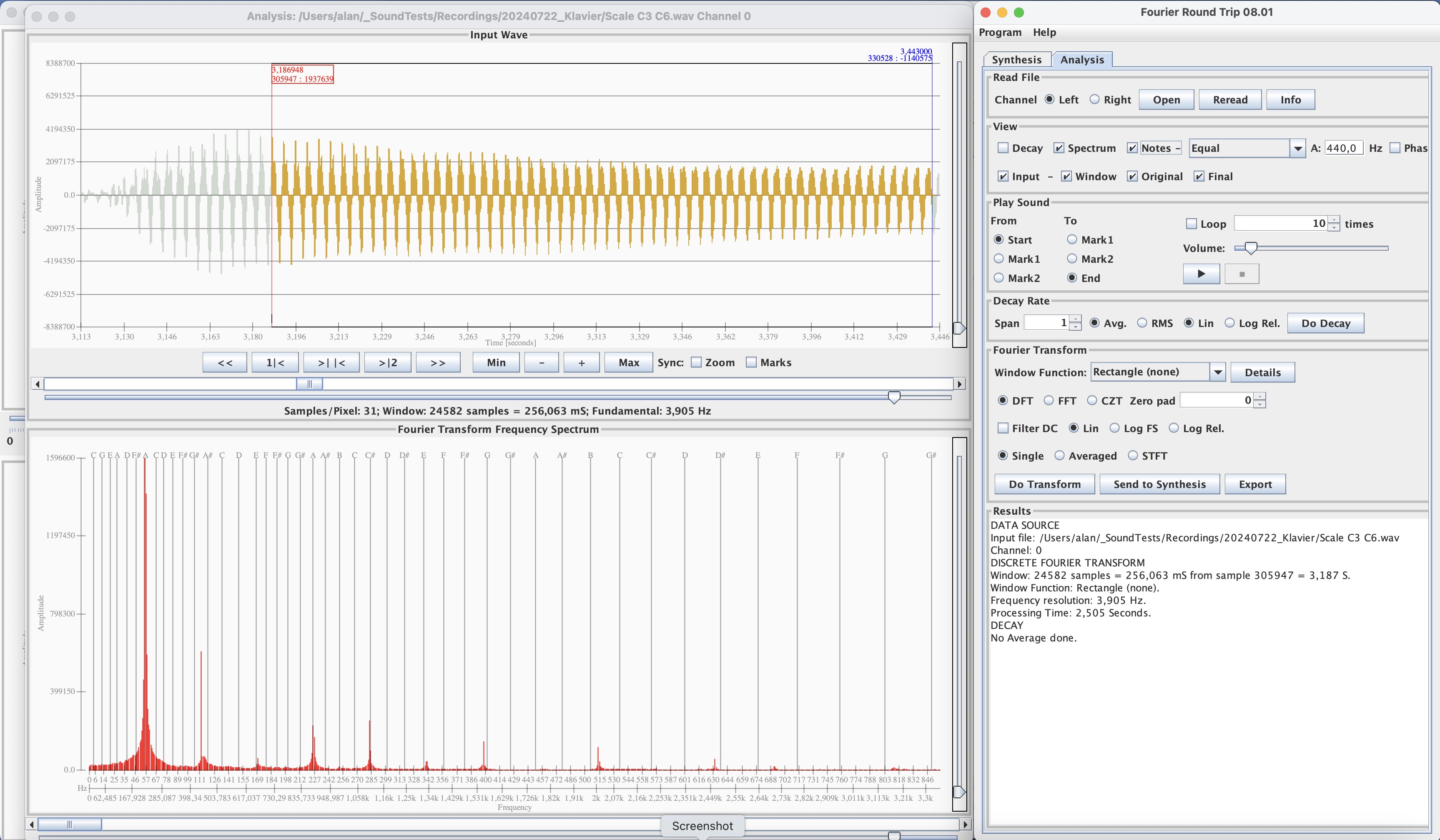 - Superimpose notes of the musical scale in a selectable temperament onto the spectrum.